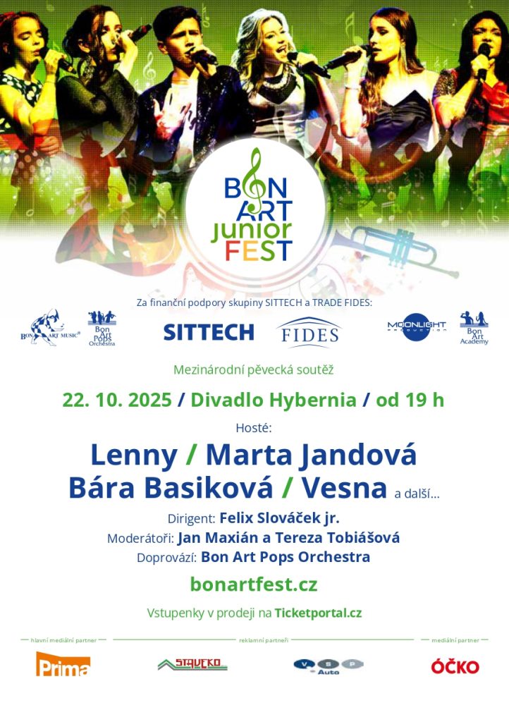 Finále mezinárodní pěvecké soutěže Bon Art Junior Fest nabídne nejen mimořádné výkony dětí a teenagerů ve věku od 10 do 16 let, ale i hostů naší hudební scény.