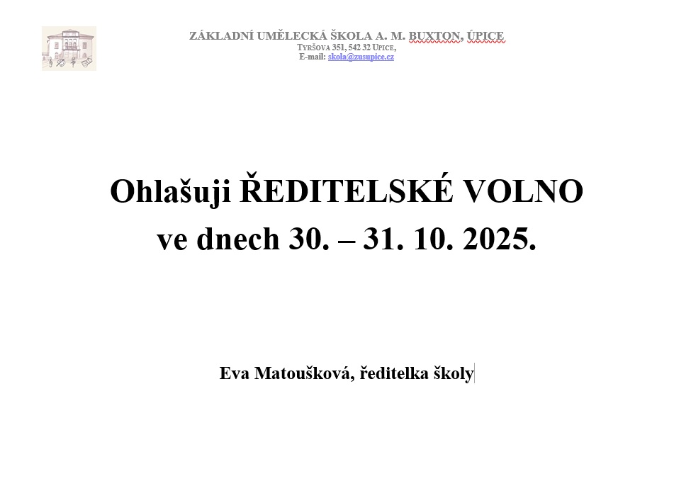 Ohlašuji ředitelské volno na pátek 29. 9. 2017.