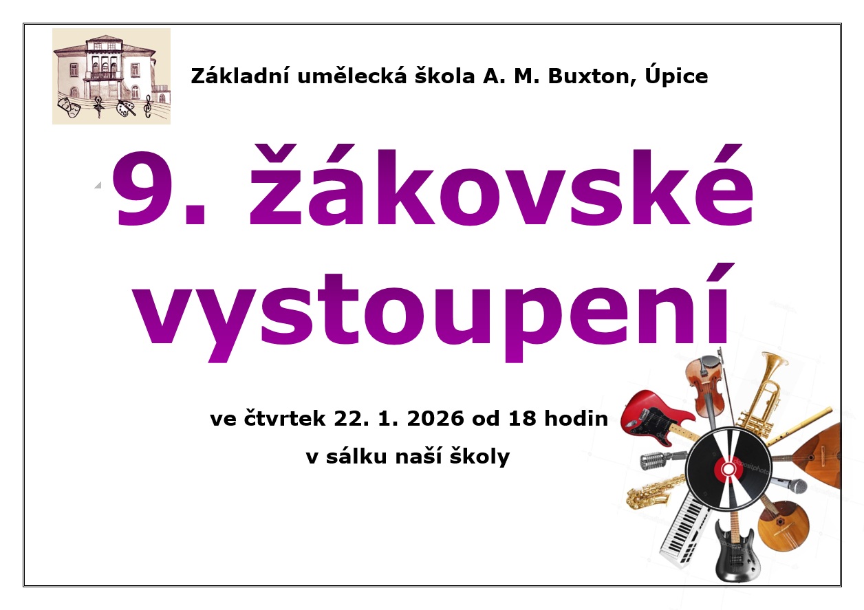 Srdečně Vás zveme na 9. žákovské vystoupení v úterý 28. 1. 2025 od 18:00 hodin.