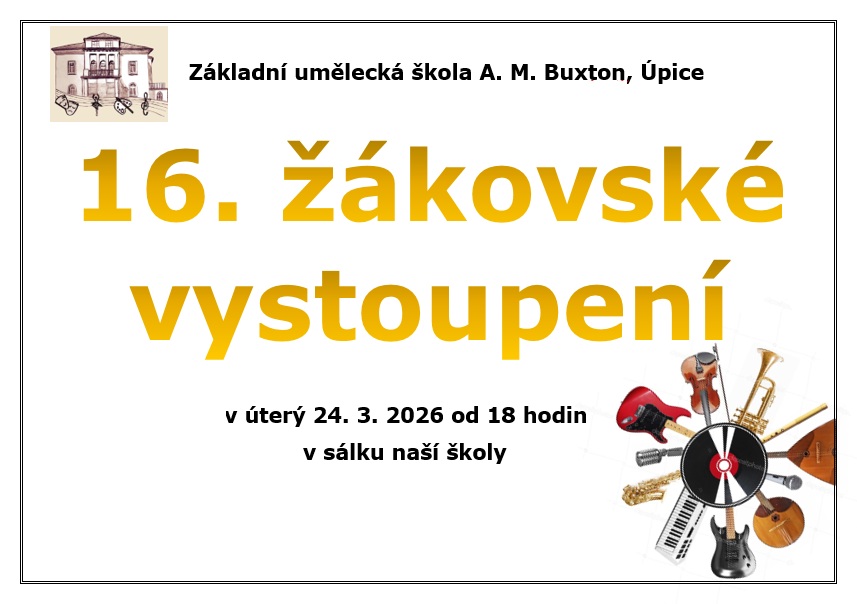 16. Žákovské vystoupení čtvrtek 21. 3. 2024 v 18:00 hodin.